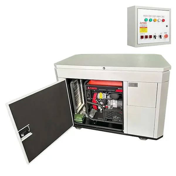 Бензиновый генератор A-iPower A13000EAX в тихом зимнем кожухе 1600 RAL 7035 + блок автозапуска A-iPower 230В/400В 100А 8 ПИН