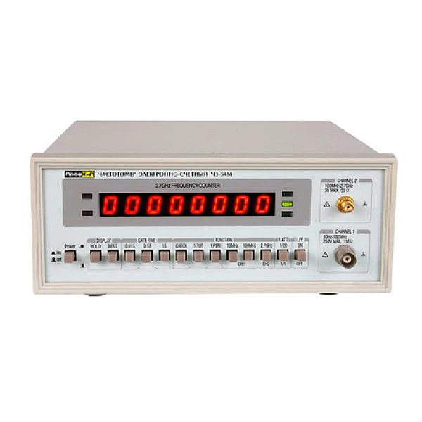 Частотомер электронно-счетный ПРОФКИП Ч3-54М измеряет частоту в диапазоне от 10 Гц до 2700 МГц и период повторения сигналов.