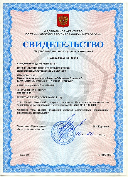 Дефектоскоп DIO 1000 PA соответствует всем международным стандартам и ГОСТам, предъявляемых к данному виду оборудования. Прошел следующие виды испытаний: