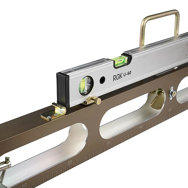 Балансир-эклиметр, установленный в полости рейки, необходим для измерения крутизны откосов и насыпей. Результаты считываются в смотровом окошке на верхней поверхности рейки.