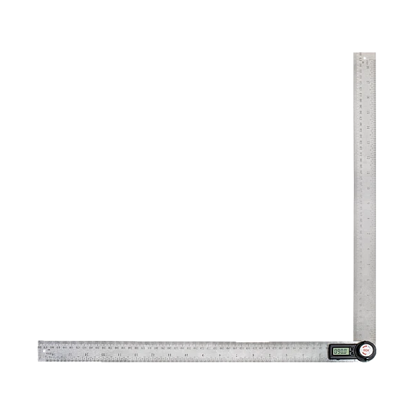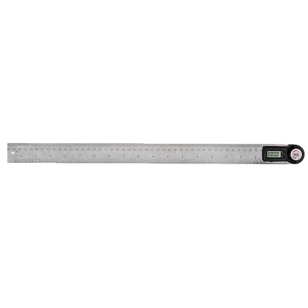 Основные 2 части угломера обладают плоской формой, что позволяет использовать его в качестве обычной линейки с возможностью измерения в см и дюймах.