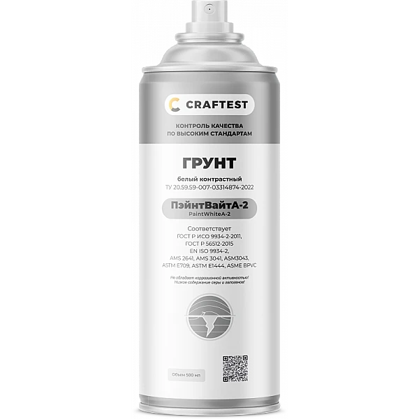 Грунт ПэйнтВайтМ-1 белый контрастный на основе ацетона представляет собой специальный белый контрастный краситель для магнитопорошкового контроля на основе растворителя, содержащего в своем составе ацетон. Предназначена для создания тонкого слоя контрастного фона на поверхности контроля для четкой различимости в обычном освещении черных частиц магнитных суспензий КРАФТЕСТ МагБлэкО-1 и КРАФТЕСТ МагБлэкО-2. Для удаления может быть использован очиститель КРАФТЕСТ КлинКар-1.