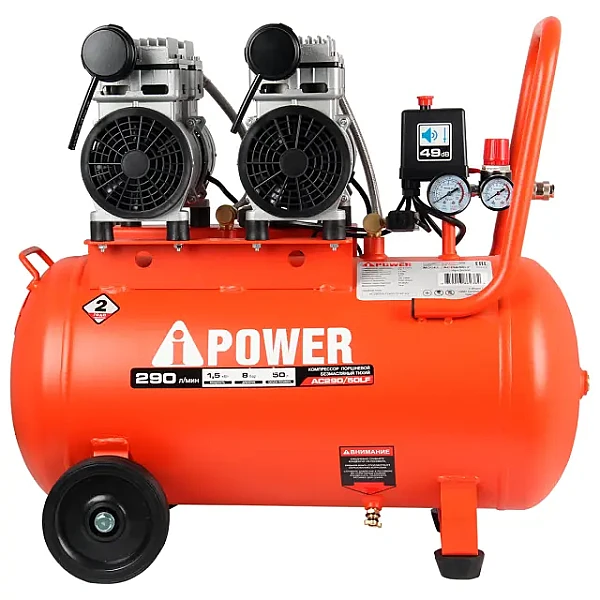 Купить Компрессор поршневой безмасляный A-iPower AC290/50LF в Якутске легко — просто позвоните по телефону: 8-800-551-11-01