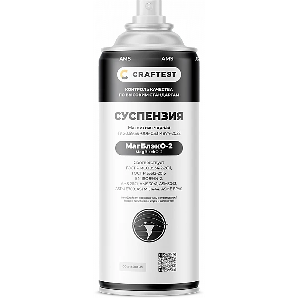 Магнитная суспензия КРАФТЕСТ МагБлэкО-2 (MagBlackO-2) чёрная представляет собой готовую суспензию магнитных частиц на масляной основе (средне-концентрированную) для проведения магнитопорошковой дефектоскопии не флуоресцентным (черно-белым) методом. Осмотр проводится при обычном освещении. Идеально подходит для проведения ручного контроля на строительных объектах, контроля на месте размещения тяжелых деталей или конструкций, а также для применения в мелкосерийном производстве. Благодаря оптимальной формуле и качеству производства суспензия позволяет проводить контроль с высокой чувствительностью и повторяемостью результатов.