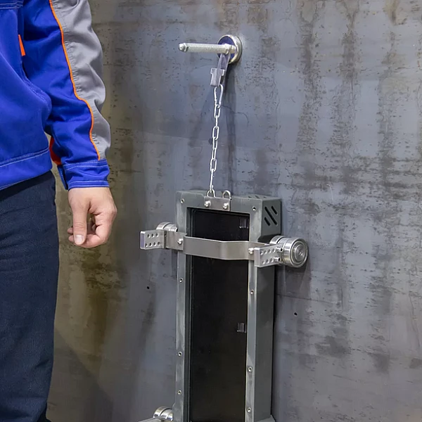 Магнитные колеса ЭКО-10МК используются для позиционирования плоскопанельного детектора Экоскан 10 в защитном кожухе ЭКО-10У на трубах диаметром от 219 мм и плоских объектах контроля из ферромагнитных металлов, ориентированных в любом пространственном положении. Приспособление оснащено фиксатором с магнитным основанием, который работает как якорь и исключает скатывание детектора с наклонной поверхности.
