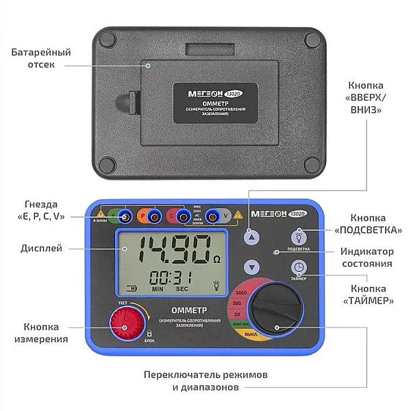Купить Омметр (измеритель сопротивления заземления) МЕГЕОН 13020 в Якутске легко — просто позвоните по телефону: 8-800-551-11-01