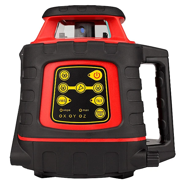 Производители учли особенности эксплуатации устройства на строительной площадке и обеспечили ротационный нивелир функцией виброзащиты. Вы можете настроить нивелир на низкую вибрационную чувствительность, чтобы он не реагировал на порывы ветра и тряску. В случае сильного удара вращение излучателя автоматически прекращается. Корпус ротационника максимально защищен от влаги и пыли по стандарту IP66.