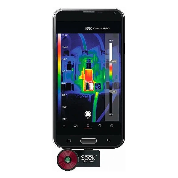 Тепловизор Seek Thermal Compact PRO для Android - предназначен для подключения к смартфону или планшетному ПК для определения температуры от -40 до +330° C и может обнаруживать тепловое излучение на расстоянии до 550 м. Хорошее решение для любителей туризма, охотников, домашних мастеров. Перед покупкой необходимо уточнить совместимость прибора с вашим мобильным устройством.