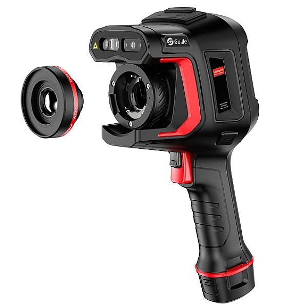 Интеллектуальная тепловизионная камера Guide H2 для применения в промышленности, помогает находить неисправности оборудования и перегрев механизмов. Тепловизор оснащён детектором с разрешением матрицы 256 x 192 пикселей, частота кадров 30Гц, картинка чёткая и плавная. Диапазон измерения температуры -40°C +150°C, 0°C +650°C с автоматическим переключением режимов работы. Тепловизор оснащён 5 мегапиксельной камерой, есть функция наложения изображений (запатентованная технология MIFusion+) – фото с камеры видимого спектра накладываются на термограмму, в результате получается более чёткая термограмма за счёт автоматической прорисовки контуров объектов. В комплекте с камерой два аккумулятора, зарядки хватает примерно на 5 часов работы.