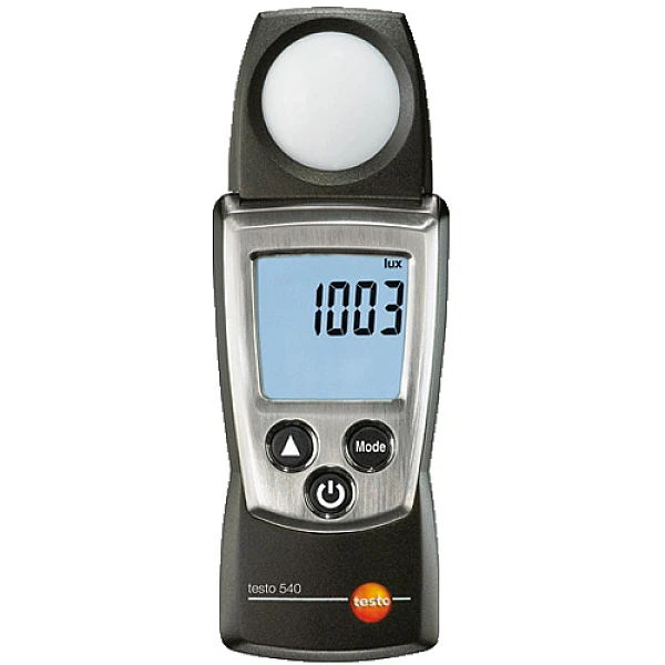 Измеритель освещенности Testo 540, как и другие приборы из серии Pocket Line, отличается малыми габаритами и весом (менее 100 грамм), поэтому как нельзя лучше подходит для оперативных измерений. Данная модель выполнена в виде моноблока (датчик жестко закреплен на приборе), что позволяет все замеры выполнять одной рукой.